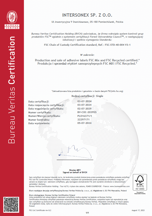 Posiadamy certyfikat FSC